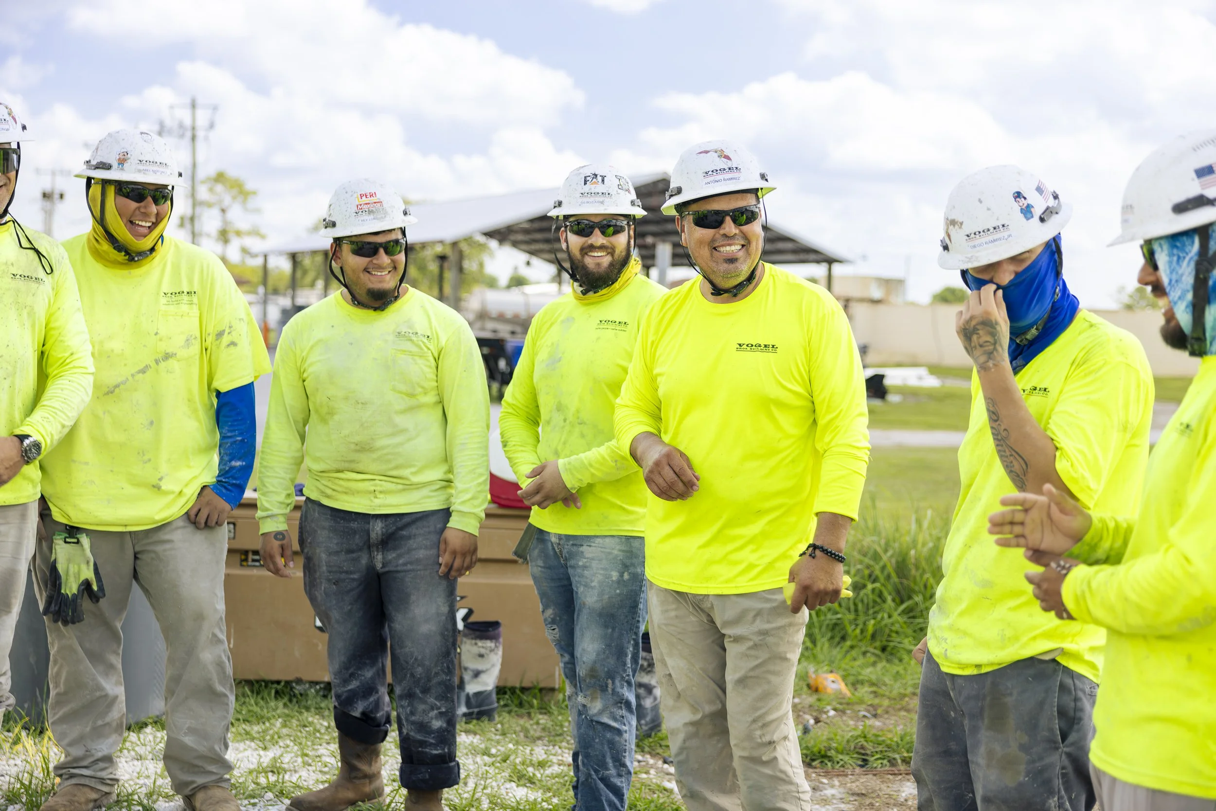Our crew arrives fully geared with hard hats, high-vis vests, and steel-toe boots- signing in like any trade and meeting every OSHA requirement.